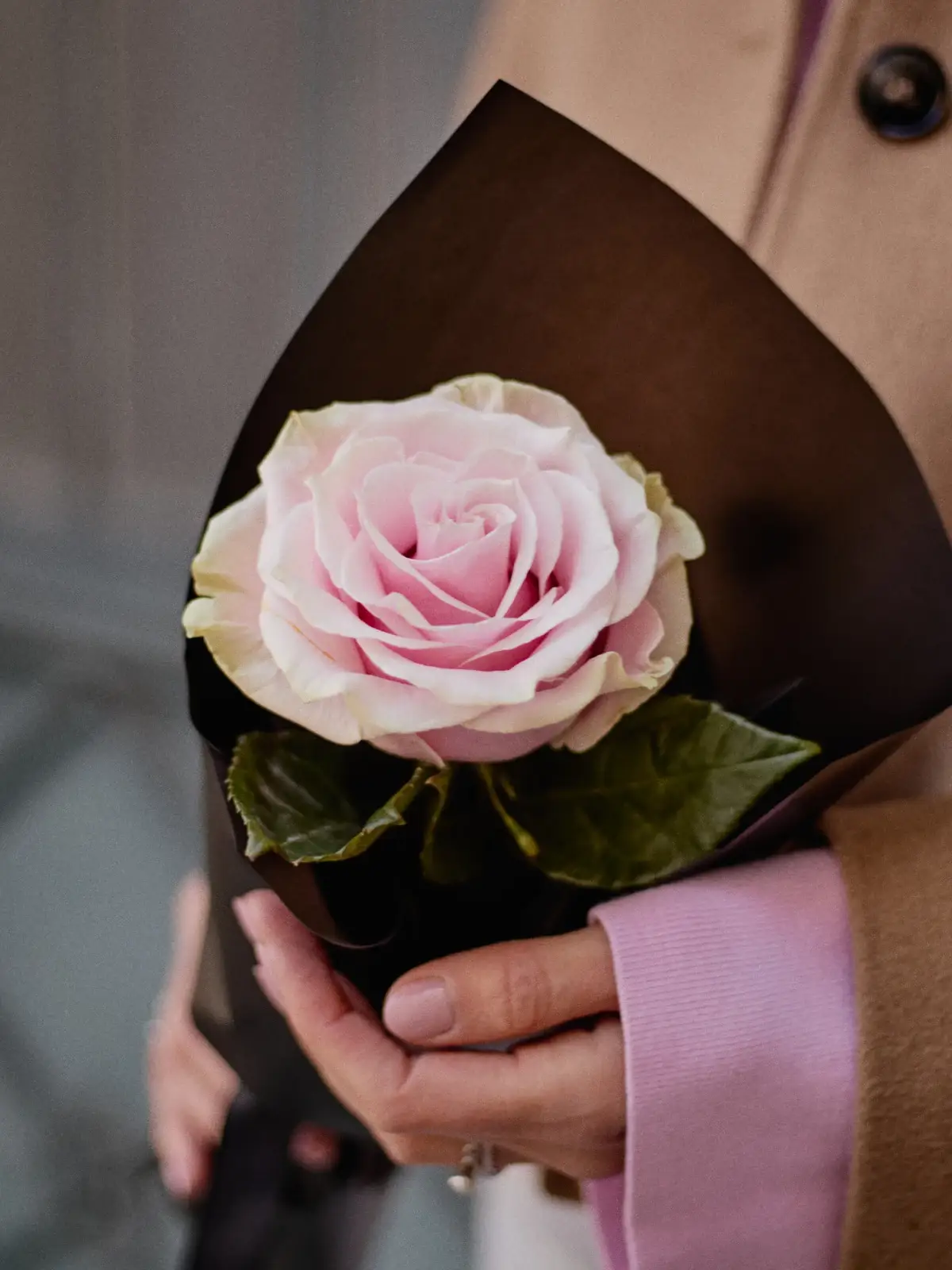 Egyszálas rózsa fekete díszcsomagolásban